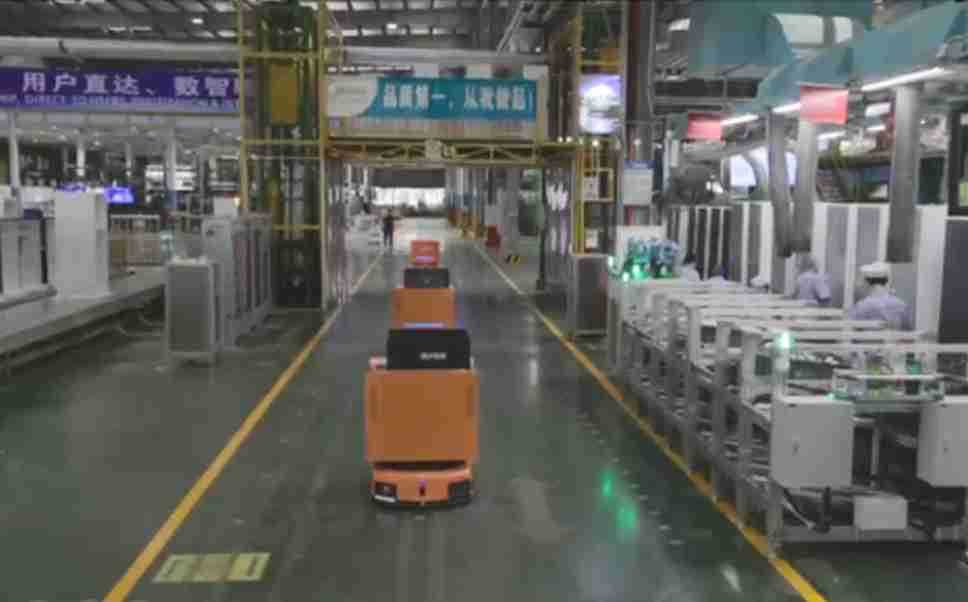 为车载冰箱物流配送打造的智能解决方案,,包含产中物流通过潜伏举升AMR搬运至线边,,,产后成品物流智能仓储,,流程包含产中物流智能齐套入库,,,线边安灯叫料AMR智能配送至线边,,,成品入库、、出库,,,,通过无人堆高车机器人,,智能仓储管理替代人工作业管理,,,,实现更高存储、、、更高效率、、更具柔性化的解决方案。。。